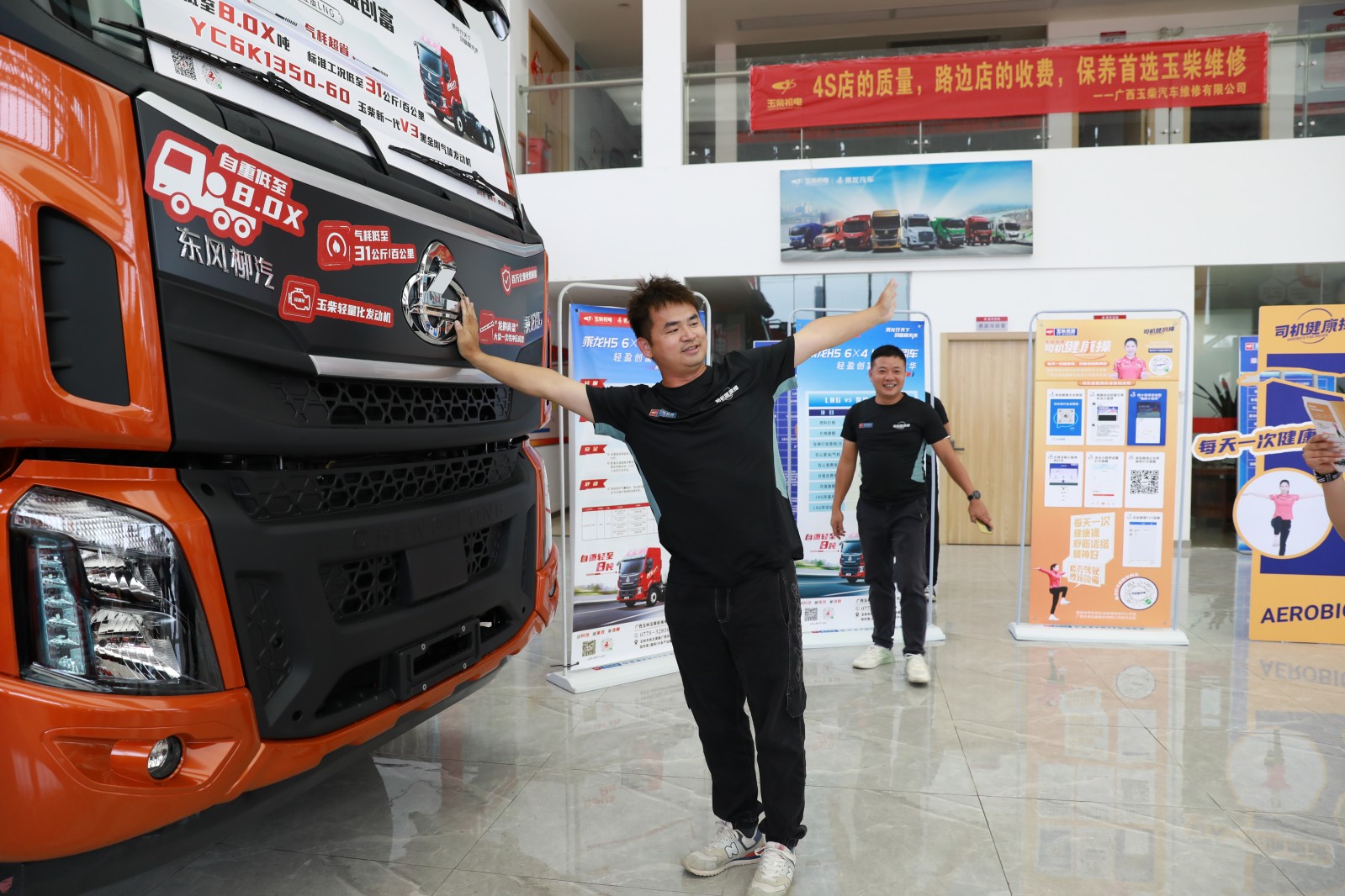 玉柴物流集團聯合品牌公關部開展乘龍H5-500燃氣牽引車推廣暨司機健康操推廣活動